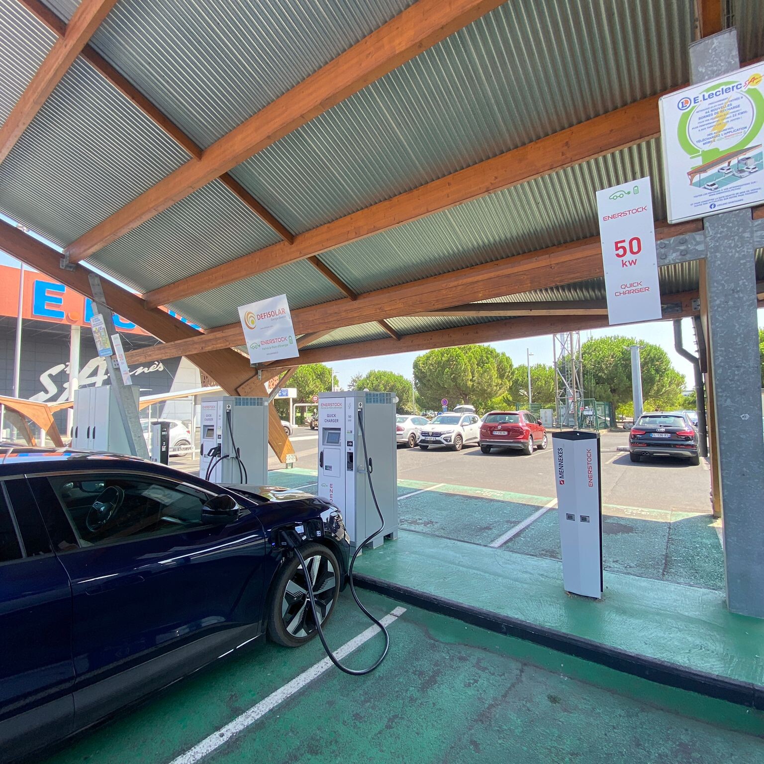Au mois d’août, nous avons équipé le Leclerc de Saint Aunes de deux bornes de recharge 50 KW DC.
